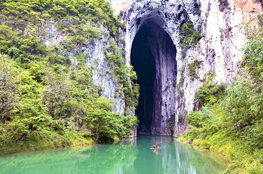 13:30-16:00(左右)抵达码头,进入自然氧吧呼吸新鲜空气,前往洞中庭院【穿上洞】。参观【盲谷】原始森林的各类野生植被,后进入【方竹林】体验神奇的大自然。接着看国内最深的竖井—【通天洞】。后乘观光电梯穿越进入另外一个世界,沿栈道下山抵达浮桥。观看当地艺人表演【蜘蛛人徒手攀岩】绝技表演。