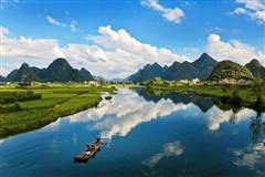 【全景大漓江三星船】(4小时)早餐后乘车赴漓江码头,游览百里画廊—全景大漓江三星船,AAAAA级(含船餐航空盒饭)观赏震惊中外的著名景点:漓江上最著名的山【九马画山】、漓江上最美的景【兴坪佳境】、20元人民币背景-【黄布倒影】等,体验“世界上最美丽的地方”。“江作青罗带,山如碧玉簪”;船行江中,宛如迎面打开一幅幅奇妙山水画卷,真正体会到“船在江中走,人在画中游”的绝美漓江仙境,上岸后乘电瓶车,至停车场集合。