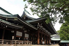 【明治神宫】(约30分钟)是1920【大正9】年为祭奉明治天皇和昭宪皇后而修建的神社。明治神宫占地面积70万平方米,神社内12万棵树木和草坪绿地环抱,环境静谧,空气新鲜。每年新年前后,来此参拜的日本人将近100万人。