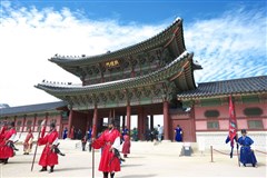 【景福宫】(约40分钟) 历史悠久的朝鲜王正宫,宫内有百官朝政之(勤政殿),发明韩国文字之(千秋殿),国王寝宫(康宁宫)等,三百年来一直是朝鲜王朝的正宫。是朝鲜故宫中维护最完善的建筑群,保持着王朝昔日的建筑格调。